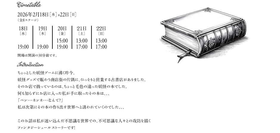 ・公演のチケットご予約、変更などこちらからはできません。チケットに関する全てのお問い合わせは、こちらではなくチケット予約フォームよりご連絡下さい。